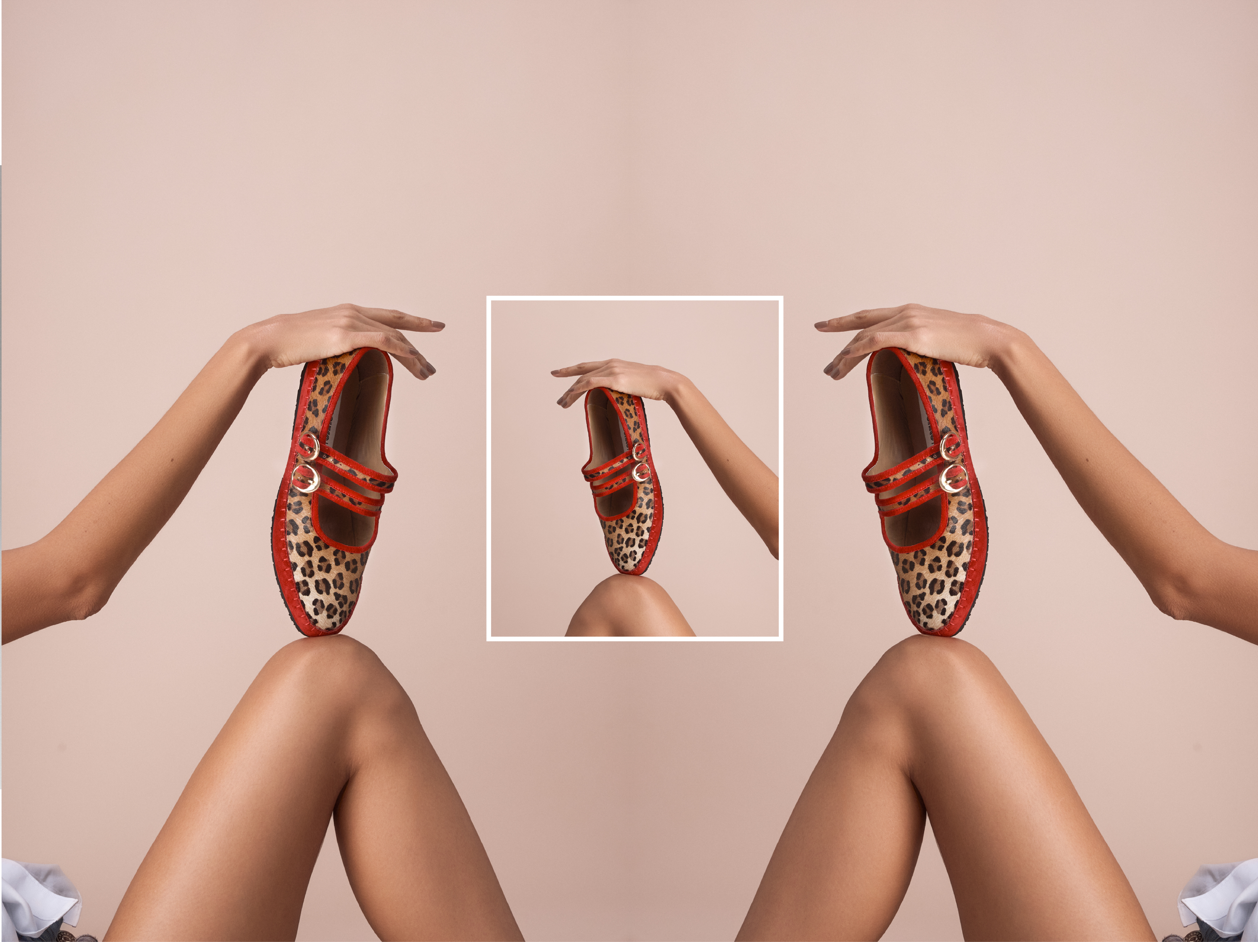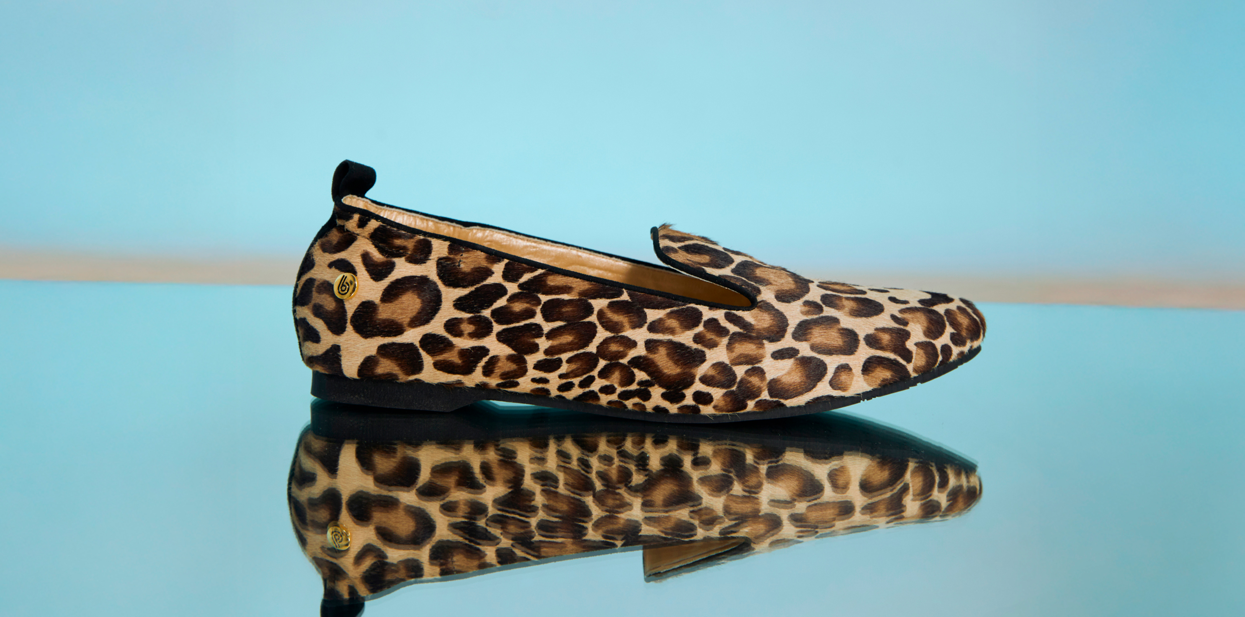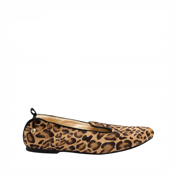 Baleta en cuero estampado animal print (el acabado del fondo es natural y puede variar según la piel)