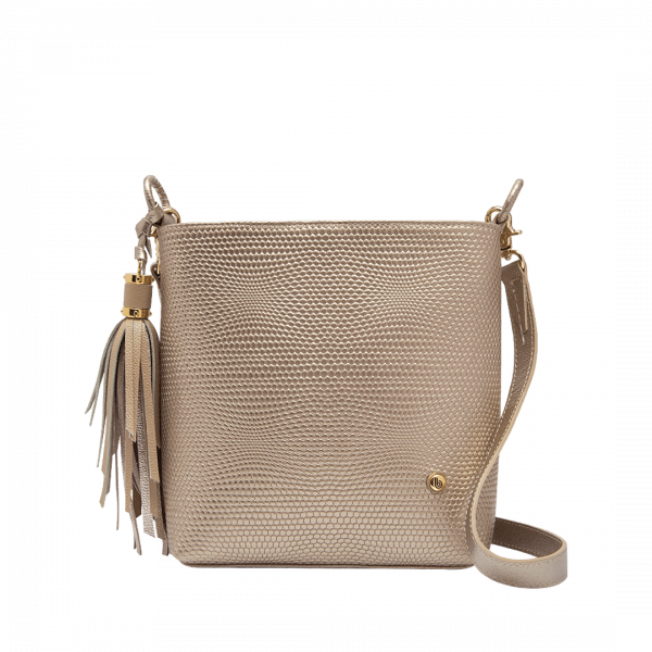 Manos libres en cuero color metal arena