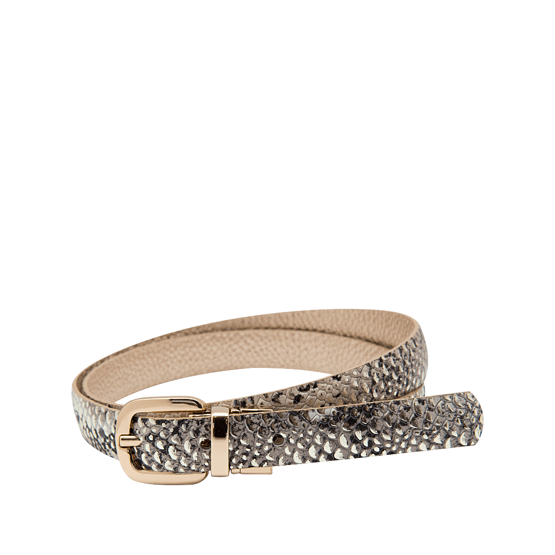 Cinturón doble faz en cuero color oro nuevo y animal print