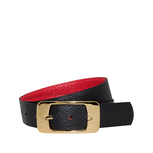 Cinturón doble faz color rojo ardiente por negro ónix en cuero grabado