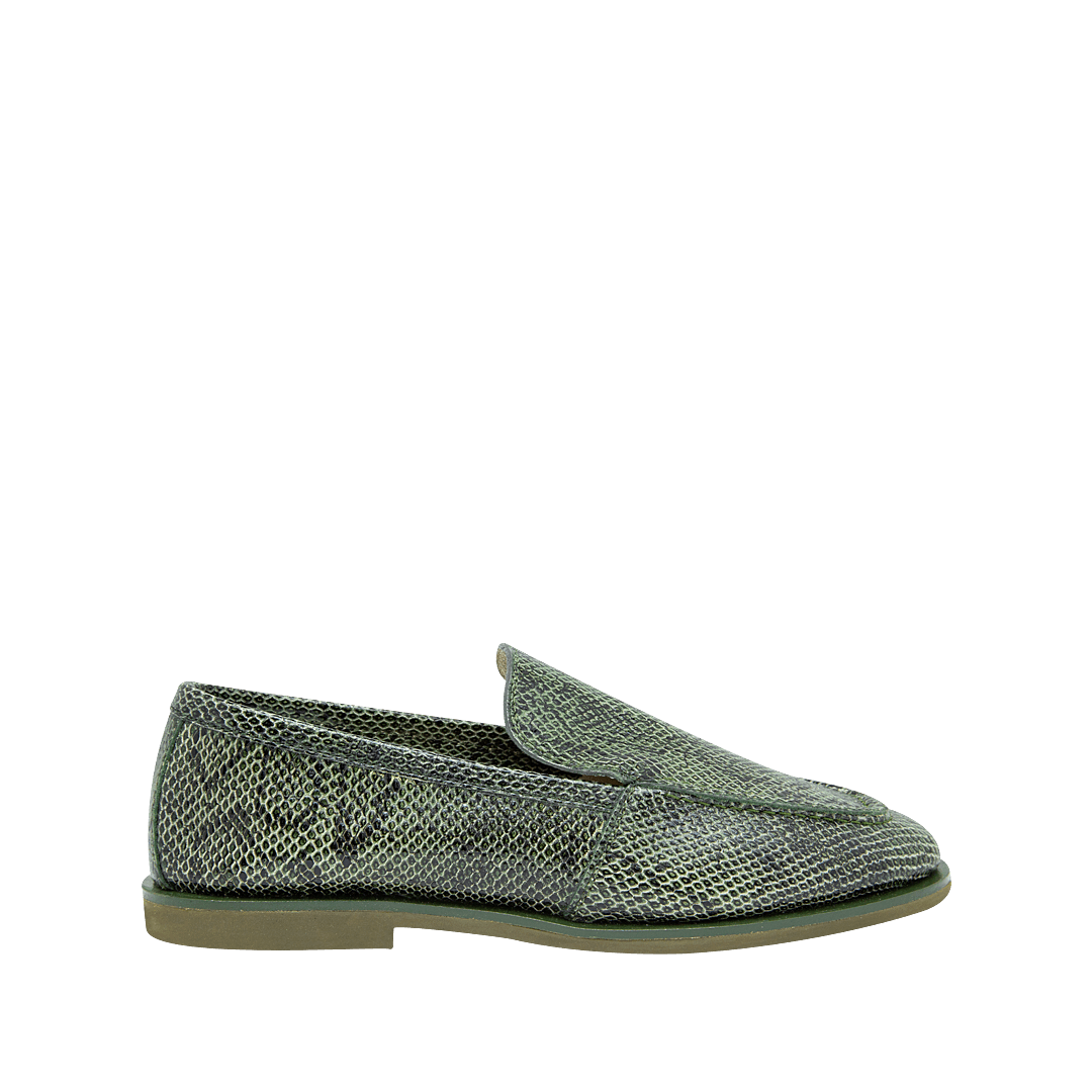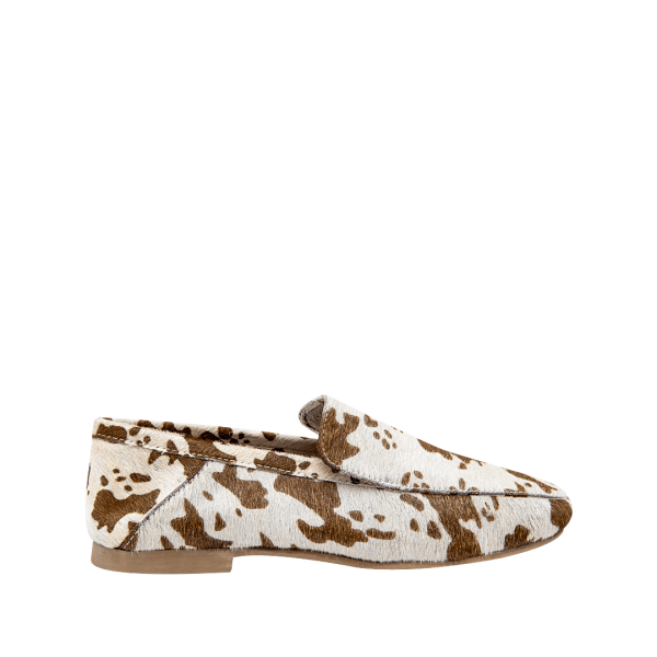 Mocasín en cuero estampado vaca (el acabado del fondo es natural y puede variar según la piel)