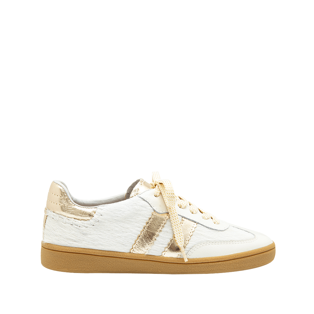 Tenis clásicos en cuero con acabado en pelo color blanco crema