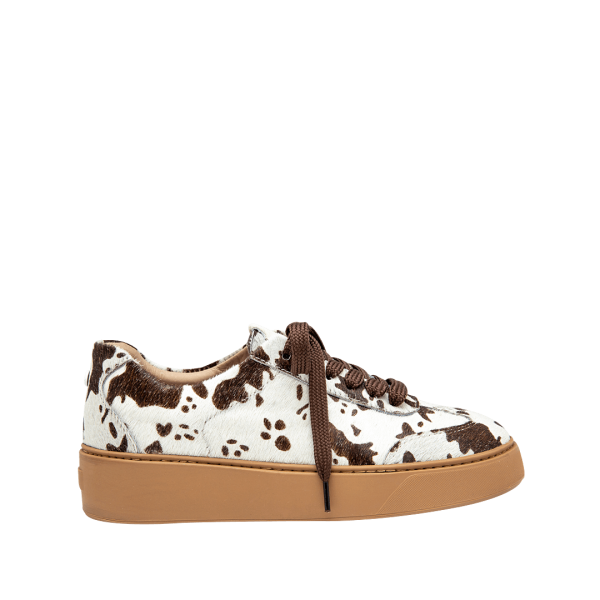 Tenis en cuero estampado vaca (el acabado del fondo es natural y puede variar según la piel)