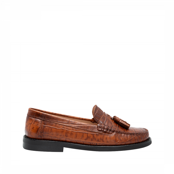 Mocasín en cuero estampado vaca (el acabado del fondo es natural y puede variar según la piel)