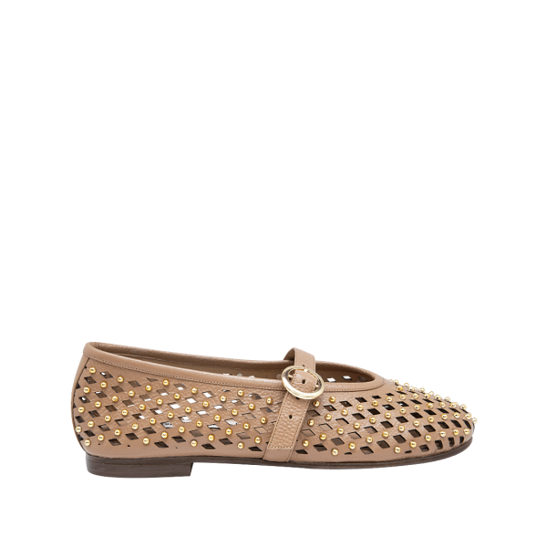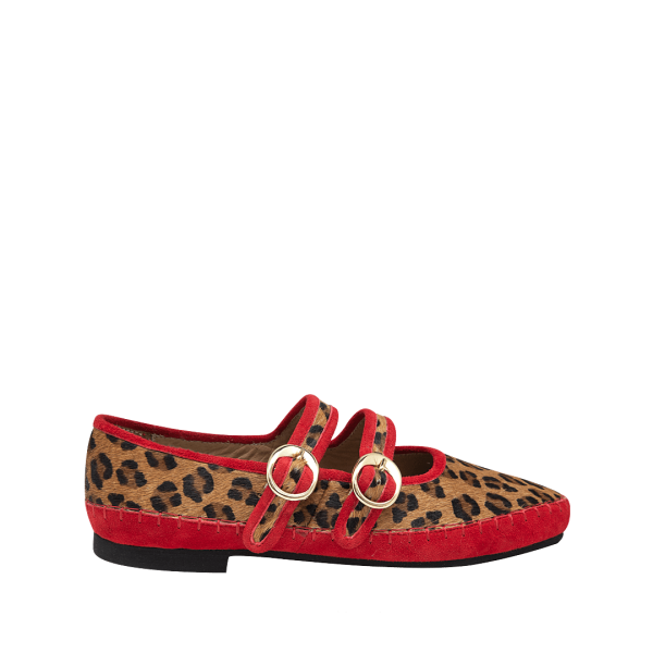 Baleta en cuero estampado animal print (el acabado del fondo es natural y puede variar según la piel)