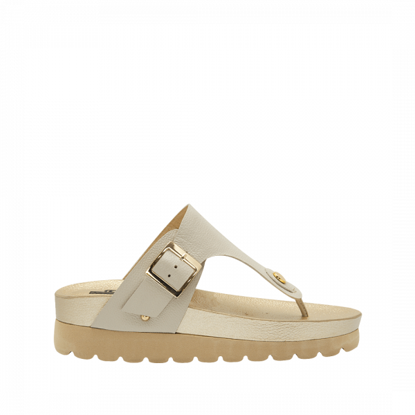 Sandalia plana en cuero confección oro por plata