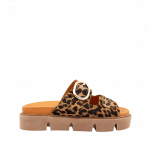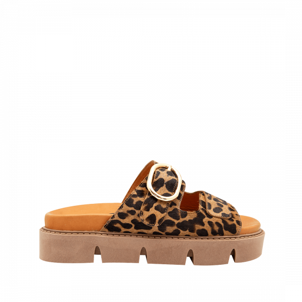 Sandalia de plataforma en cuero tipo animal print color miel (el acabado del fondo es natural y puede variar según la piel)