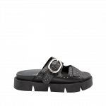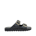 Sandalia plana con hebillas en cuero negro ónix