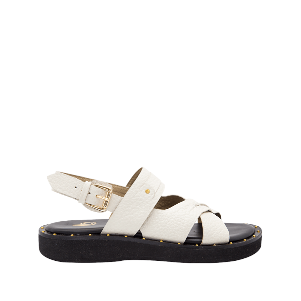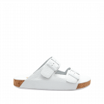 Sandalia plana con hebillas en cuero blanco puro