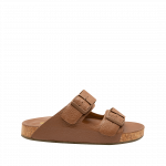 Sandalia plana con herraje en cuero roble
