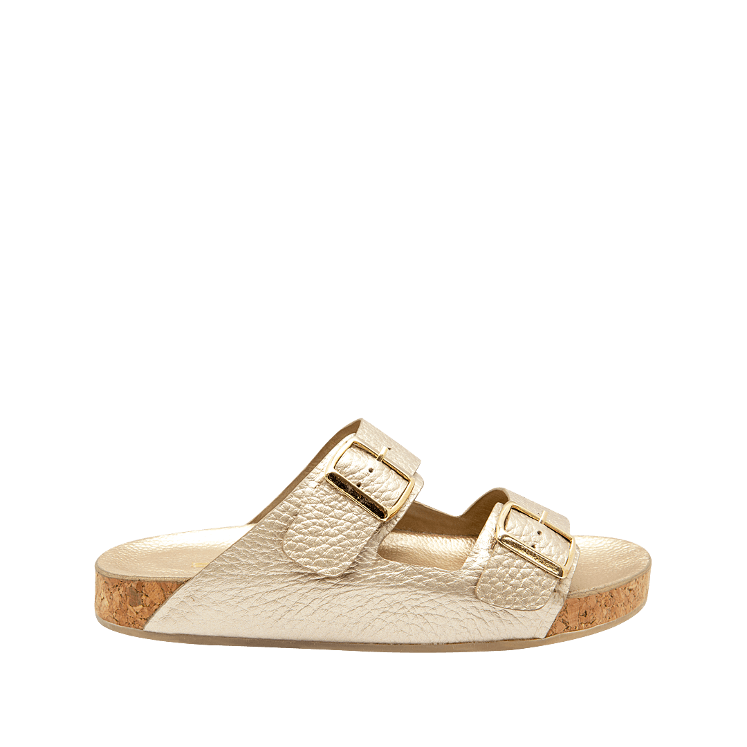 Sandalia plana con hebillas en cuero oro