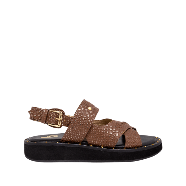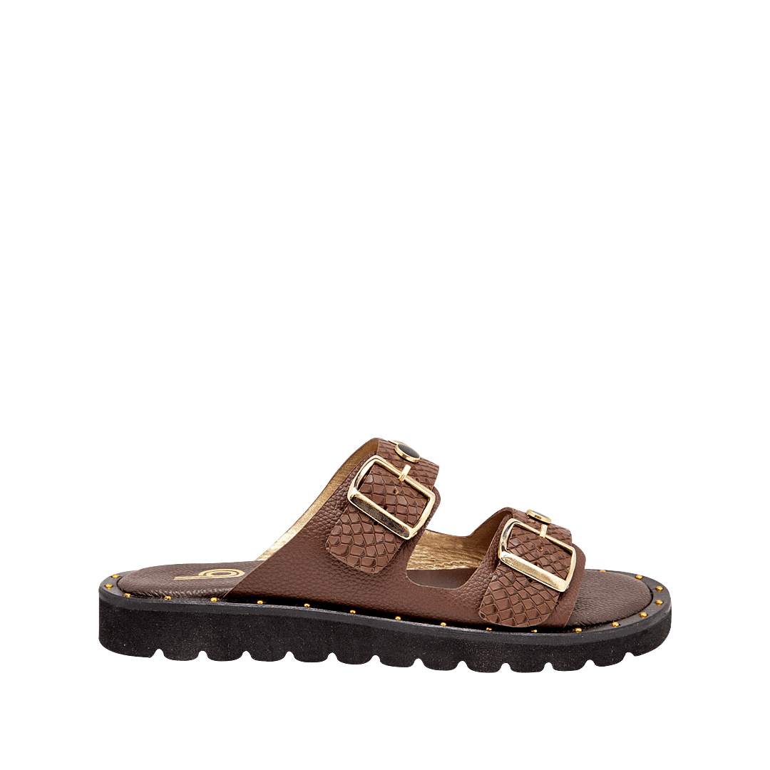 Sandalia plana con taches en cuero café