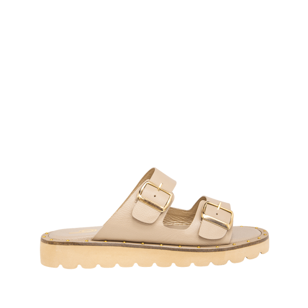 Sandalia plana en cuero duna