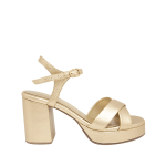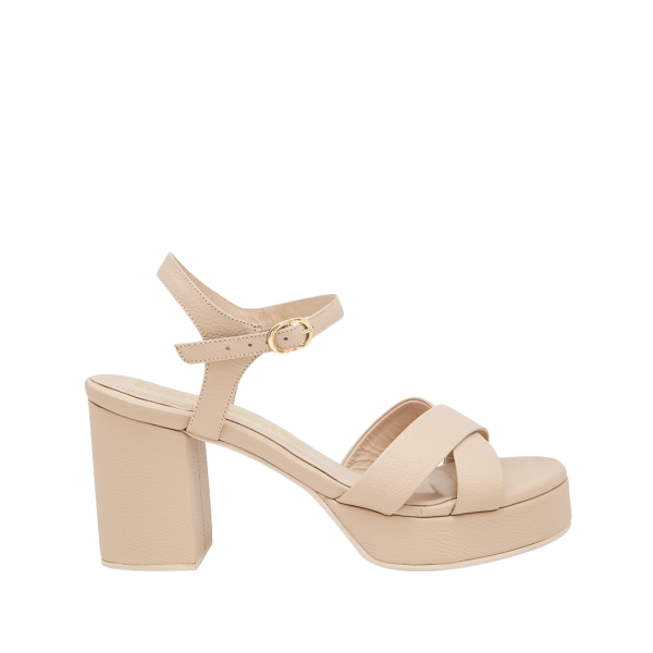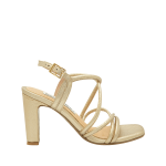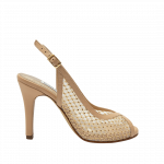 Sandalia de tacón en malla con piedras de fantasía rosa nude