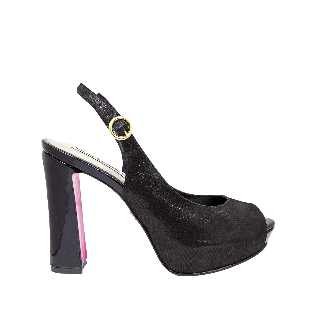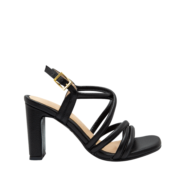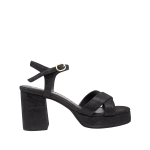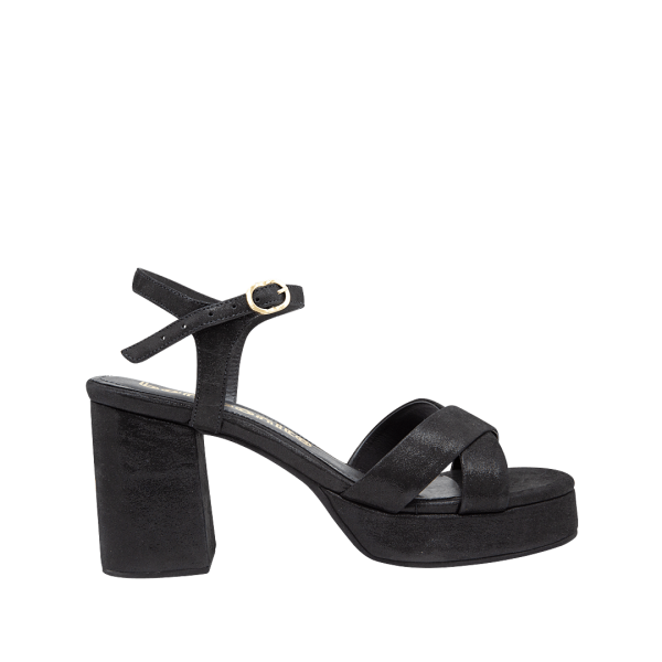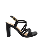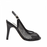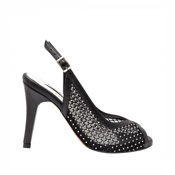 Sandalia de tacón en malla con piedras de fantasía negro ónix