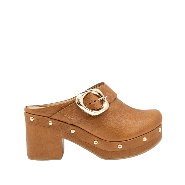 Zueco en cuero animal print (el acabado del fondo es natural y puede variar según la piel)