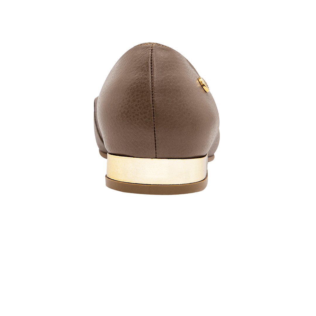 ¡Elegante y refinada! • Baleta para mujer en cuero granito color brownie con herraje decorativo • Acabado en punta semi cuadrada • Tacón con acabado metalizado • Hecho a mano en Colombia.