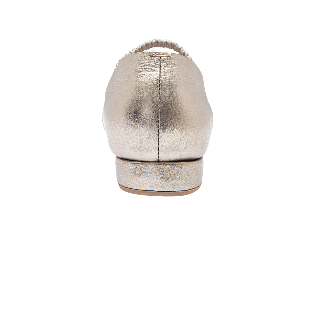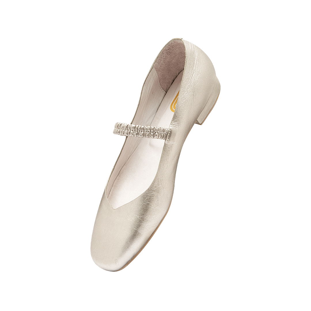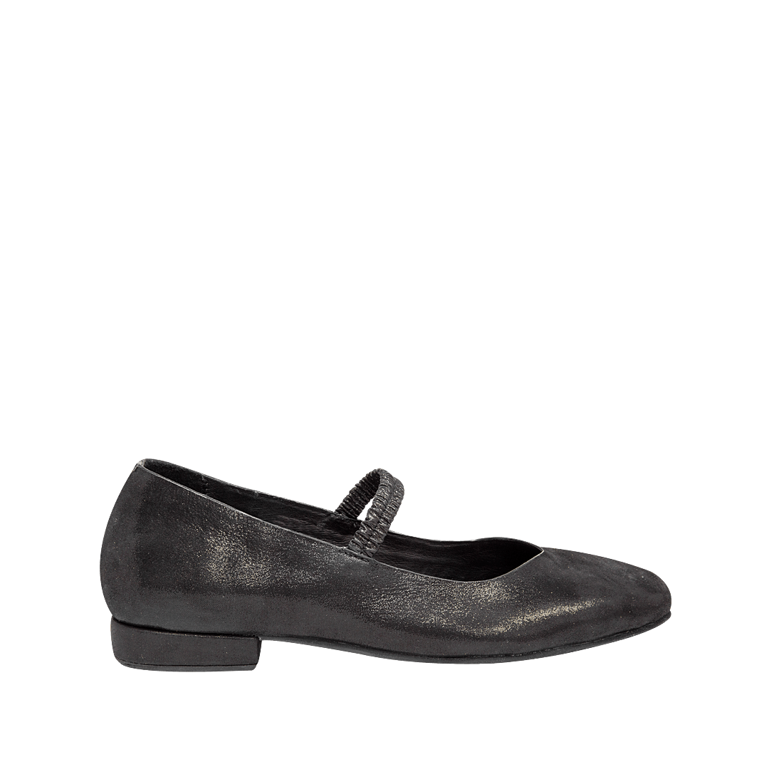 ¡Un estilo sin límites! • Baleta para mujer en cuero metalizado color fusil • Acabado en punta cuadrada • Elástico en la capellada • Tacón forrado en cuero • Hecho a mano en Colombia.