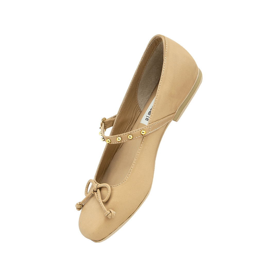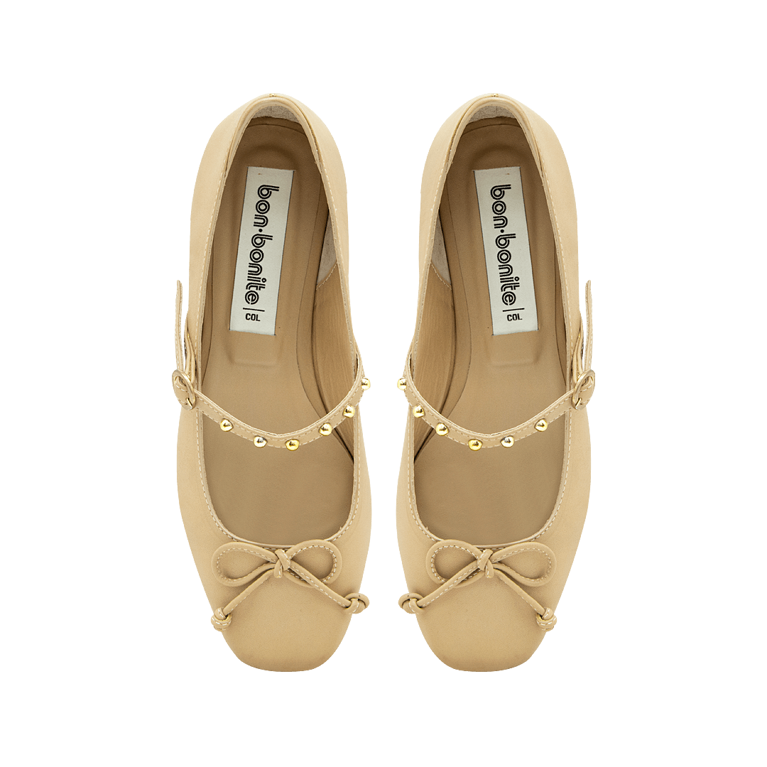 ¡Pensadas para trascender! • Baleta para mujer en cuero liso con taches decorativos color rabbit • Moño decorativo en la capellada • Acabado en punta cuadrada • Hebilla lateral para mejor ajuste • Moño decorativo en la capellada • Hecho a mano en Colombia.