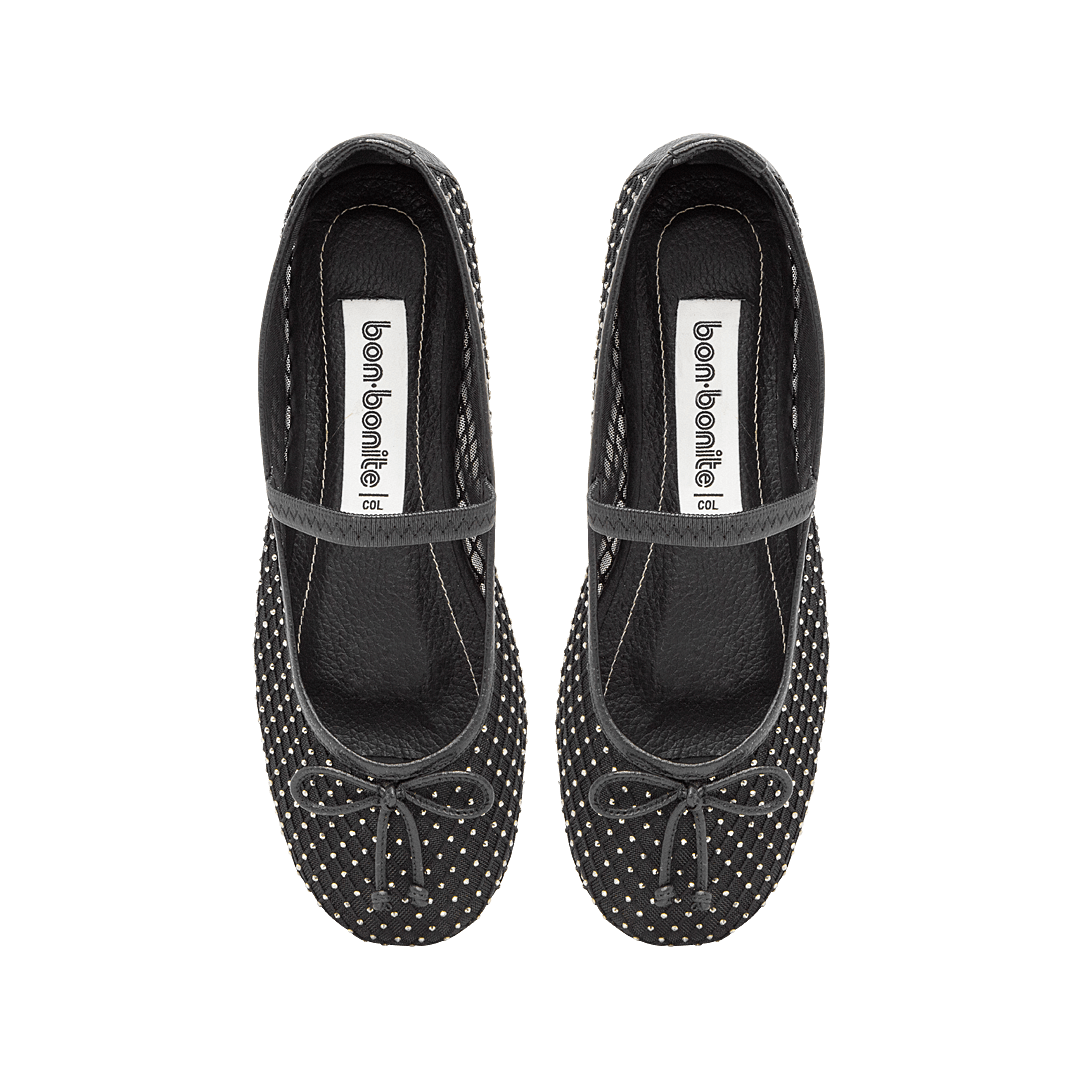 Baleta en malla con piedras de fantasía negro ónix