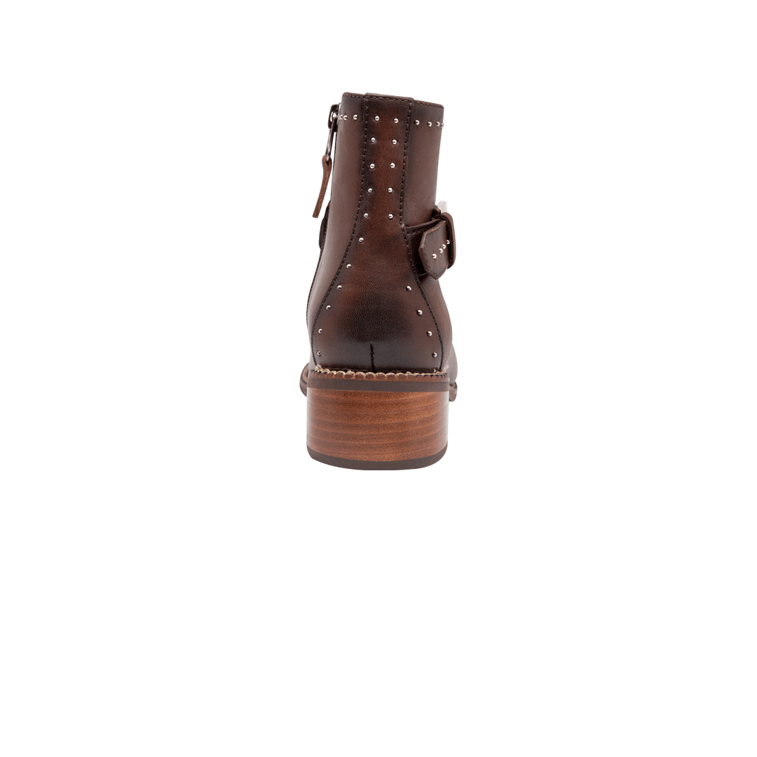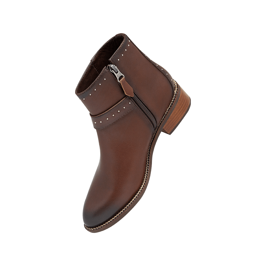 ¡Transforma lo clásico en algo inolvidable! • Botín para mujer en cuero brush off color marrón • Cierre lateral mediante cremallera • Hebilla lateral decorativa • Acabado en punta • Tacón cuadrado en madera • Hecho a mano en Colombia.