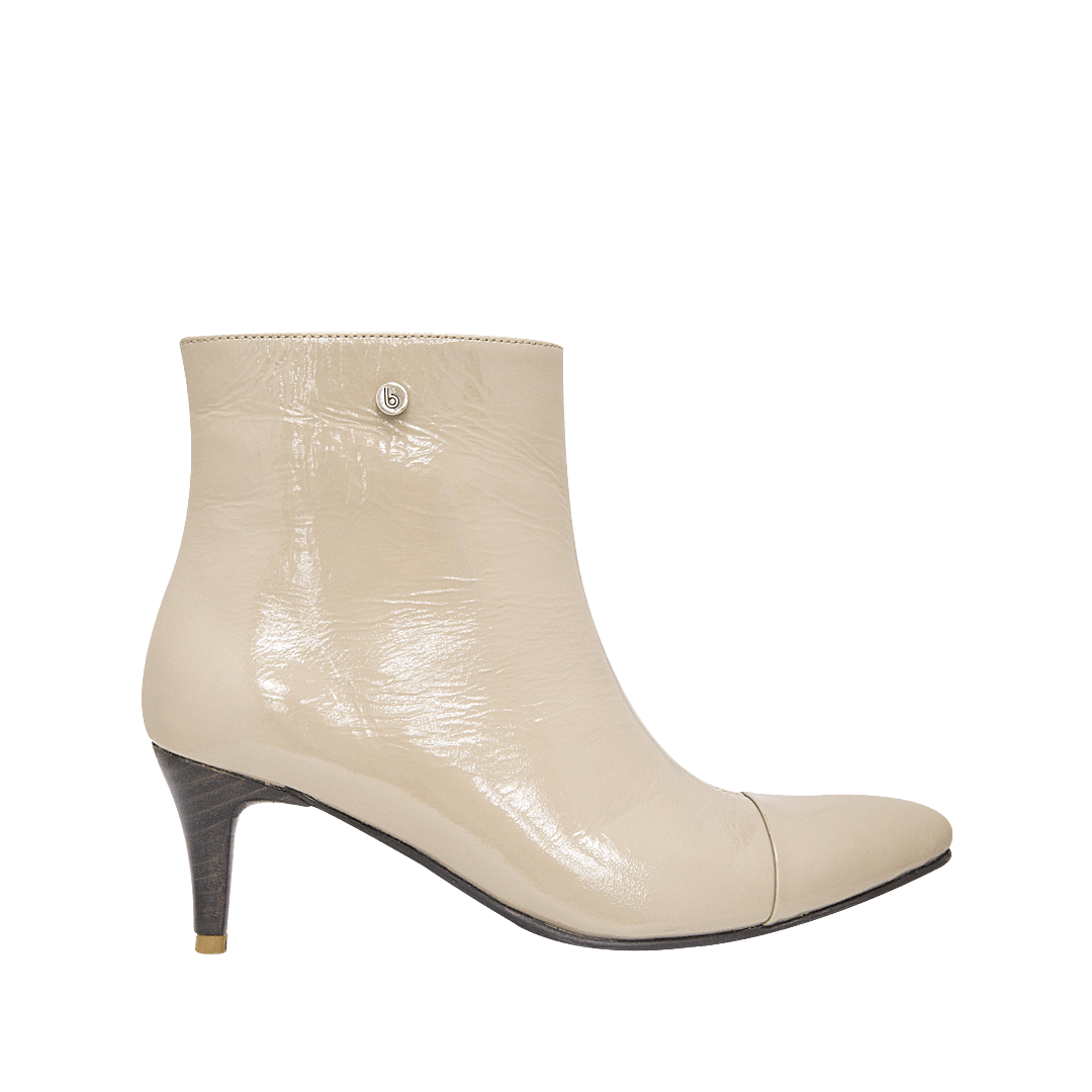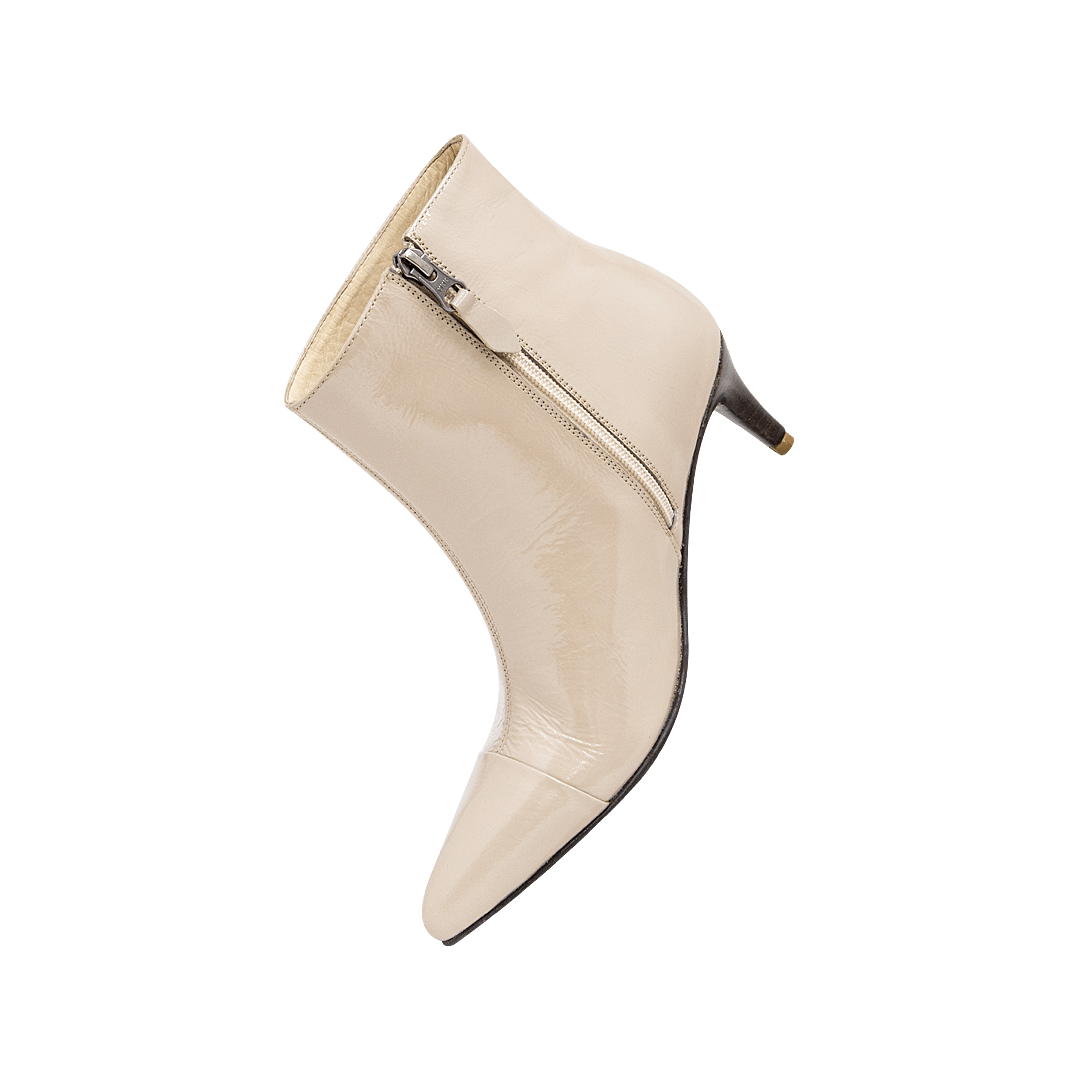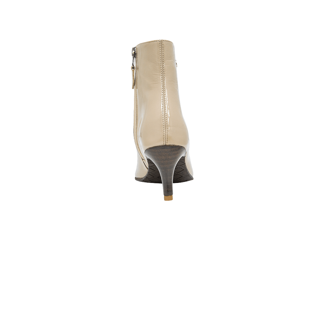 ¡Versátiles y llenas de estilo! • Botín para mujer en cuero liso color moca • Acabado en punta • Cierre lateral con cremallera • Tacón aguja forrado en madera • Hecho a mano en Colombia.