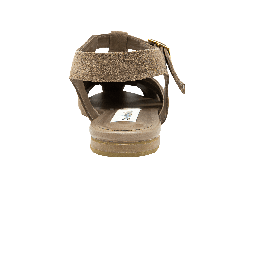 ¡Diseño ventilado que aporta comodidad y frescura! • Sandalia tipo cangrejera para mujer en cuero carnaza color almendra • Capellada en cuero entrelazado • Acabado en punta ovalada • Hebilla lateral para mejor ajuste • Mini Tacón en caucho • Hecho a mano en Colombia.