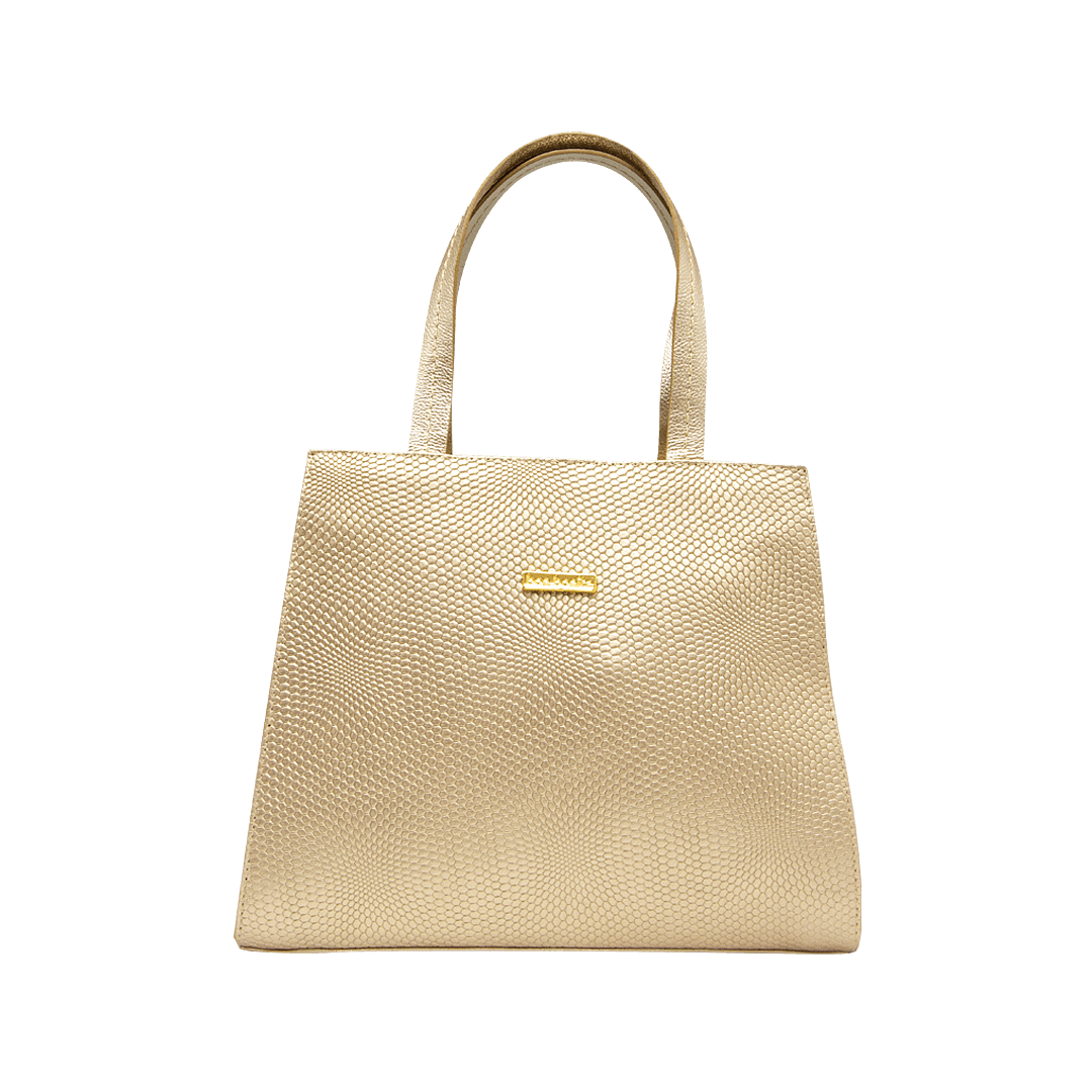 ¡Un bolso que complementa tu estilo! • Cartera para mujer en cuero grabado color oro nuevo • Cierre mediante cremallera • Bolsillo interno con cremallera • Dos bolsillos auxiliares • Asa corta doble de 39 cm • Asa larga ajustable y removible de 119 cm • Hecho a mano en Colombia.