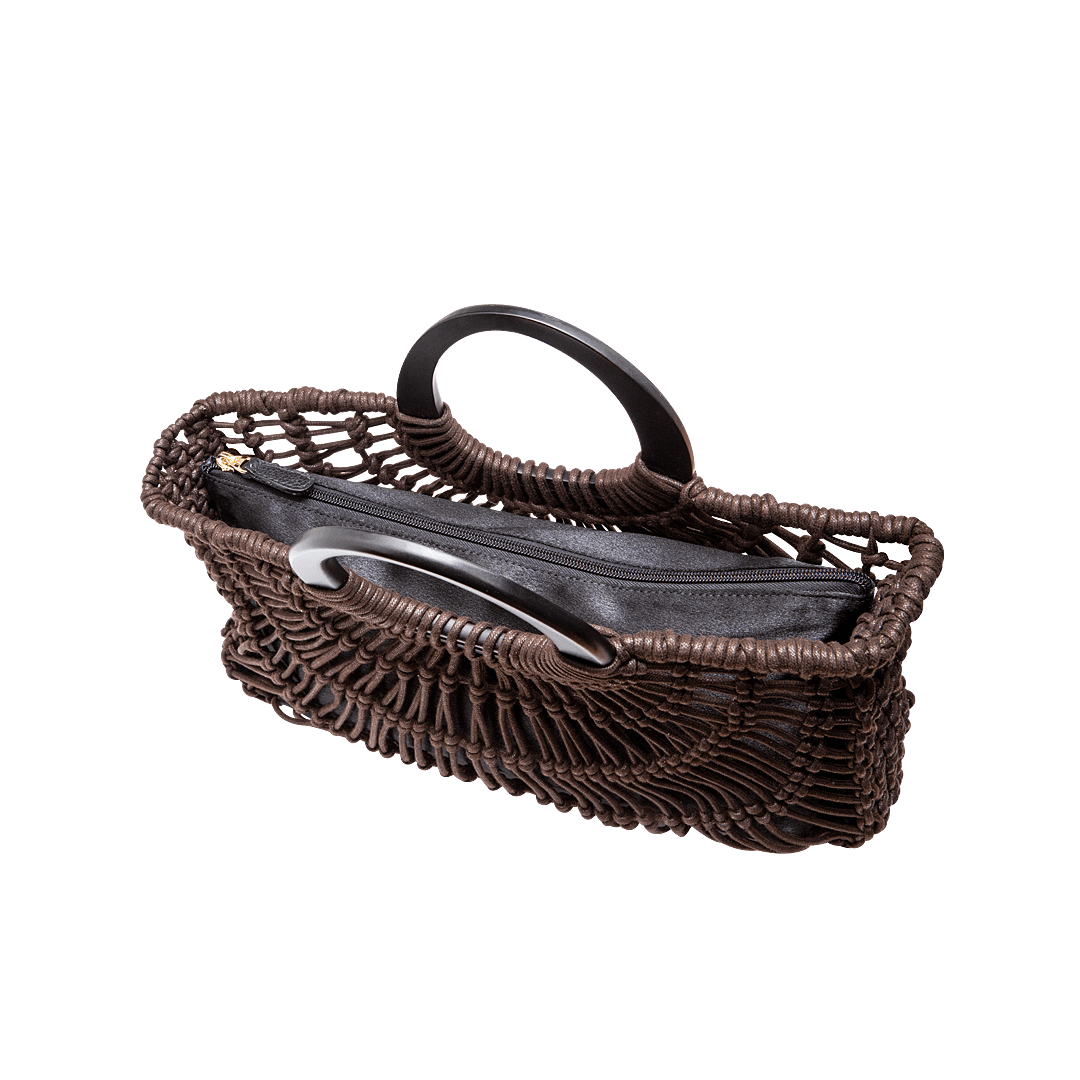 ¡Única y sofisticada! • Cartera para mujer en textil artesanal color cacao • Cierre mediante cremallera • Un compartimiento interno con cremallera • • Asa corta doble de 24 cm • Hecho a mano en Colombia.