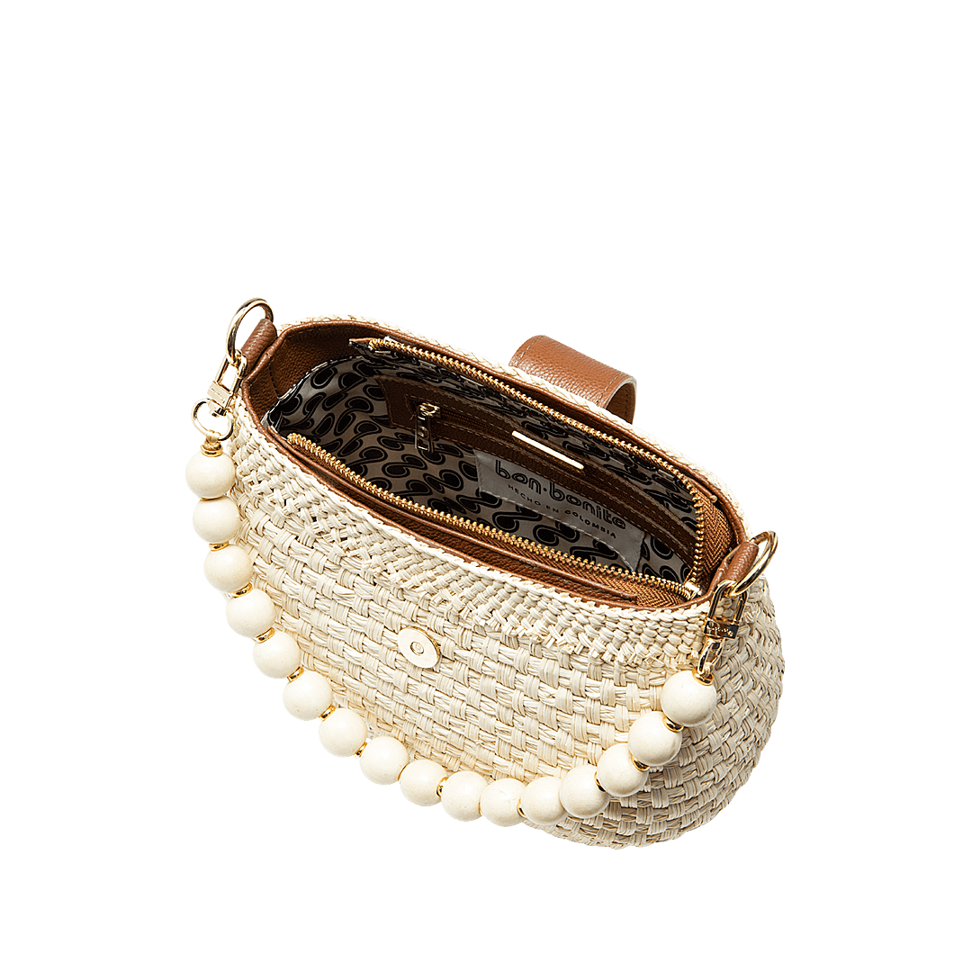 ¡Suave al tacto y con un acabado moderno que combina con todo! • Cartera para mujer tejida de manera artesanal en palma iraca y cuero • Cierre mediante cremallera y pin • Bolsillo interno con cierre mediante cremallera • Asa corta con bolas en madera • Asa larga ajustable y removible de 119 cm • Hecho a mano en Colombia.
