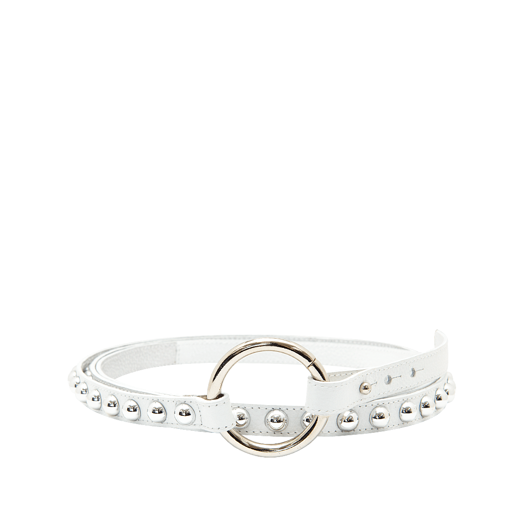 Cinturón con taches en cuero blanco puro