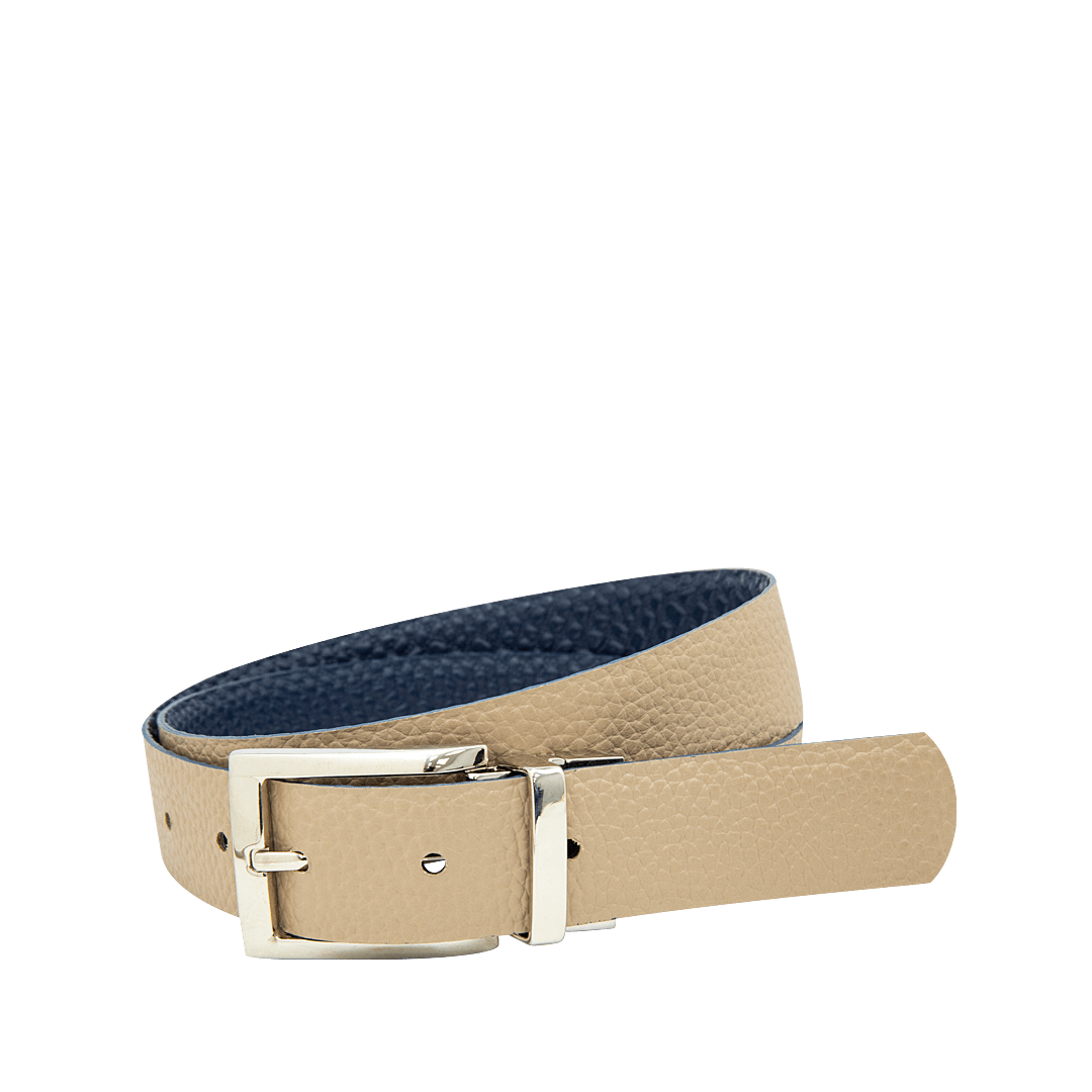 Cinturón doble faz en cuero azul profundo y pardo