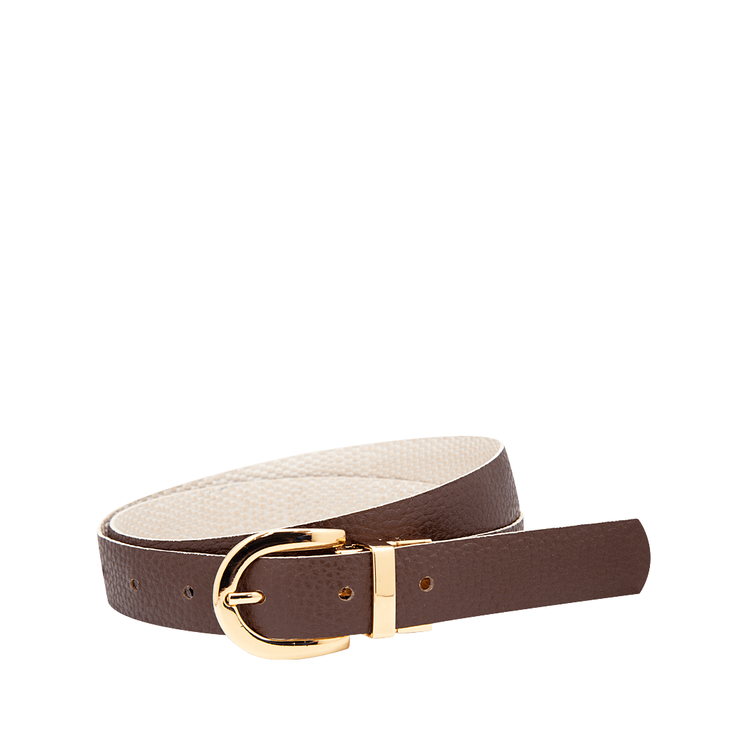 Cinturón doble faz en cuero blanco paloma y cacao