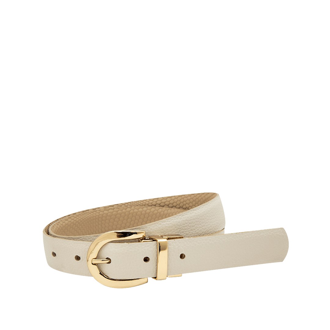 Cinturón doble faz en cuero cappuccino y blanco arena