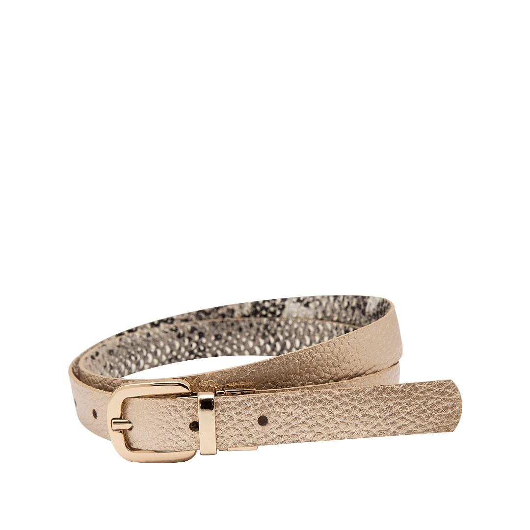 Cinturón doble faz en cuero color oro nuevo y animal print