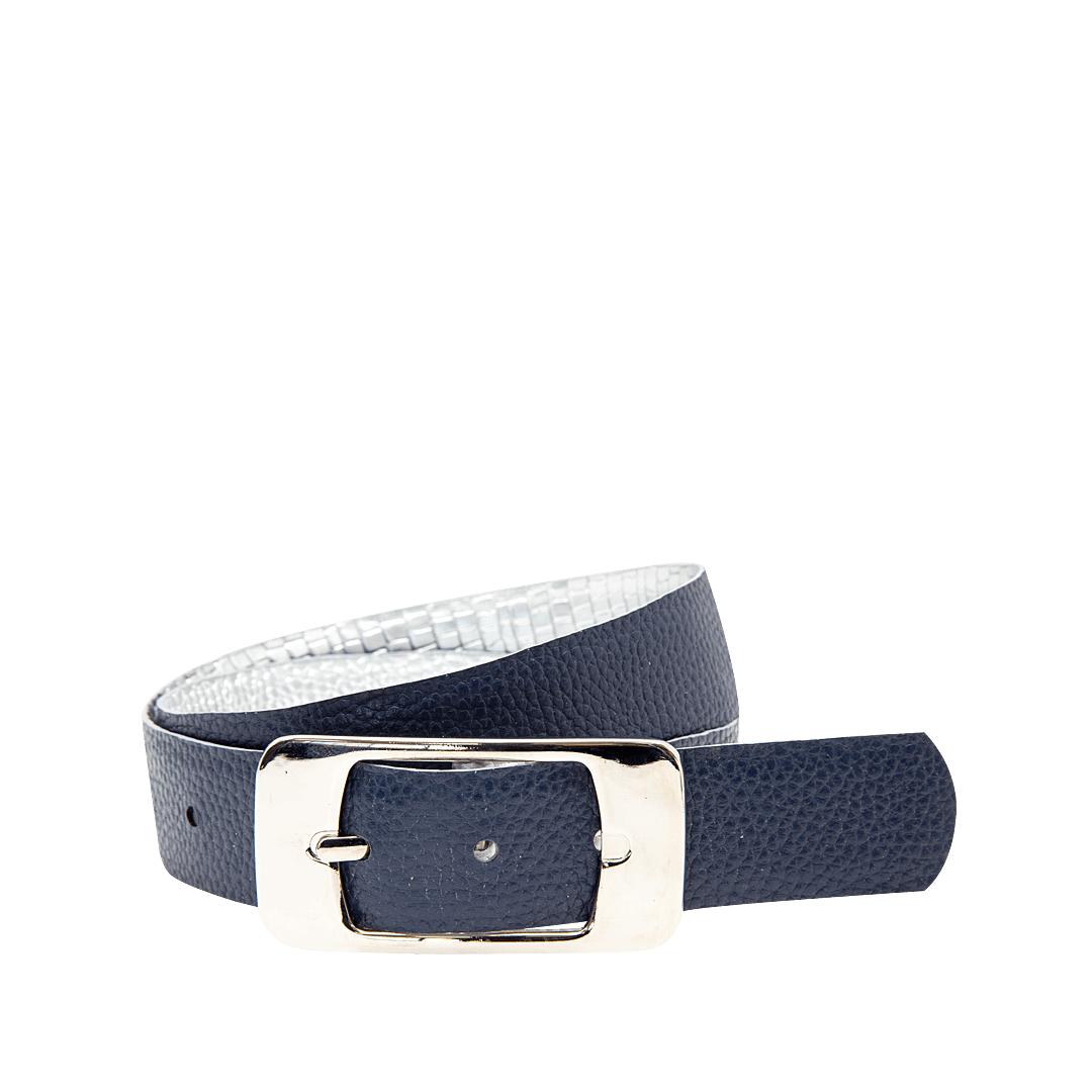 Cinturón doble faz en cuero color plata por azul profundo