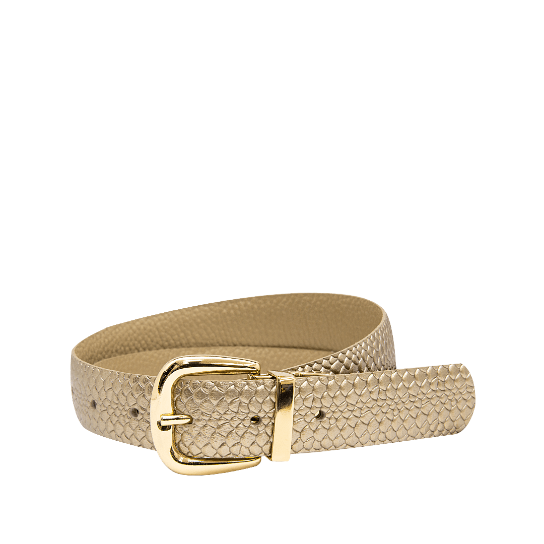 Cinturón en cuero color oro