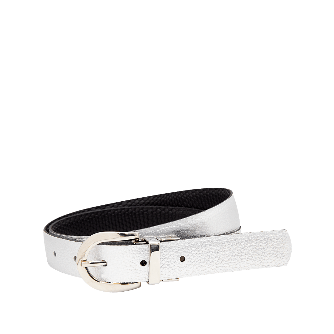 ¡Diseño atemporal que nunca pasa de moda! • Cinturón doble faz para mujer en cuero grabado y metalizado color negro ónix por plata • Hecho a mano en Colombia.