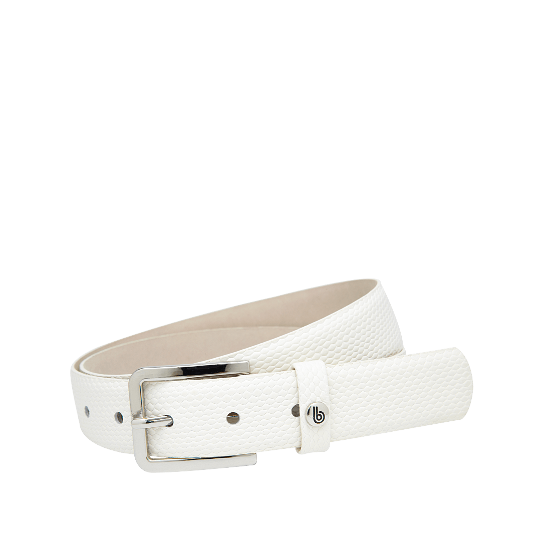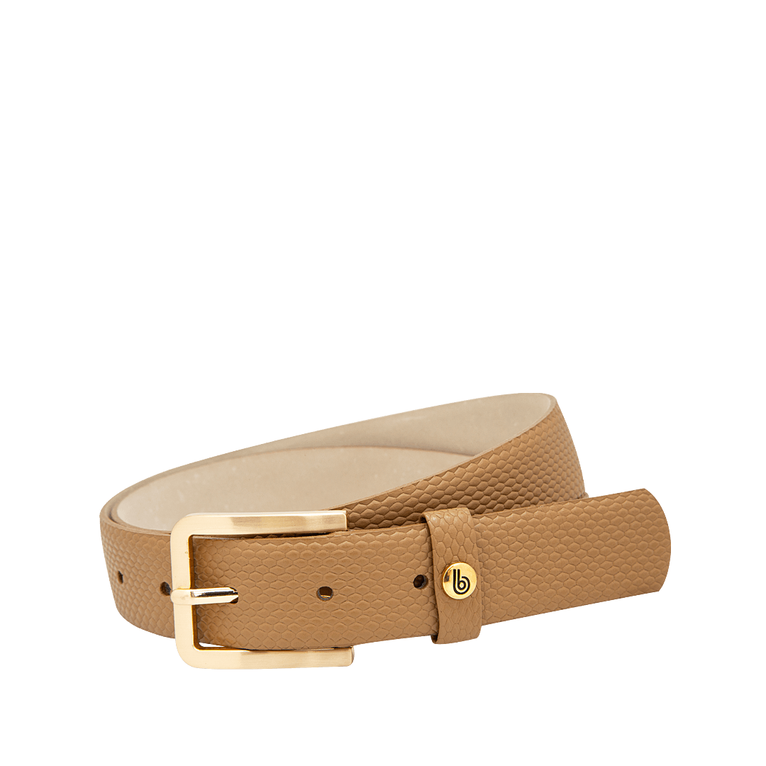 ¡Resistencia, confort y estilo! • Cinturón para mujer en cuero grabado color chantilly • Hecho a mano en Colombia.