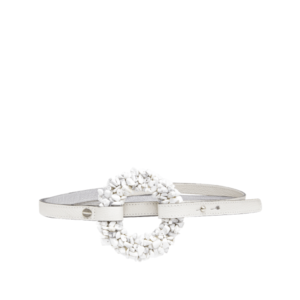 ¡Dale un toque de fuerza y estilo a tu día a día! • Cinturón para mujer en cuero granito color blanco puro • Hecho a mano en Colombia.