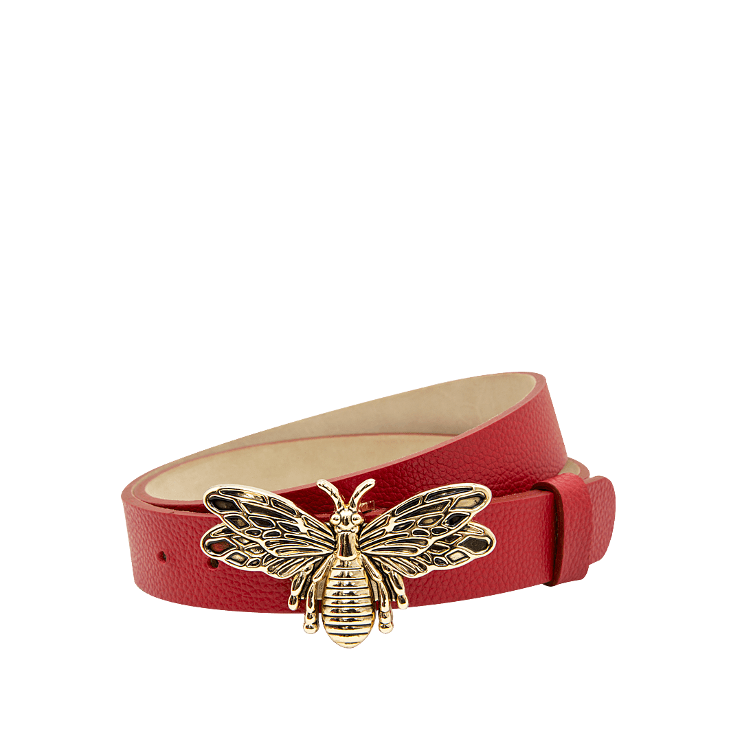 ¡Un toque único para tu día a día! • Cinturón para mujer en cuero metalizado color oro nuevo • Hebilla metálica en forma de mariposa • Hecho a mano en Colombia.