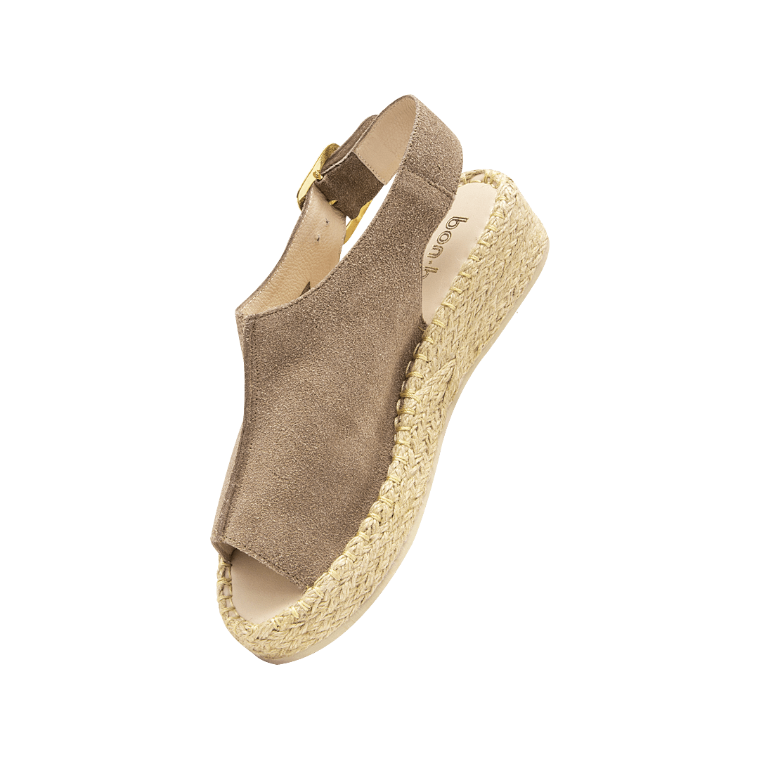 ¡Frescura y suavidad! • Espadrila para mujer en cuero carnaza y yute natural color almond • Capellada suave • Acabado en punta ovalada • Hebilla lateral para mejor ajuste • Plataforma forrada en yute natural • Hecho a mano en Colombia.