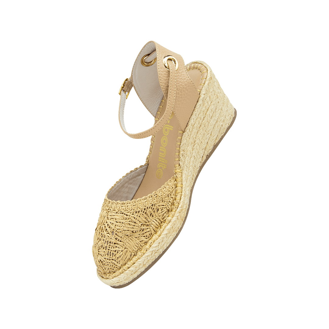 ¡Perfectas para mujeres que marcan su propio ritmo! • Espadrila para mujer en rafia y cuero granito color anís • Acabado en punta ovalada • Hebilla lateral para mejor ajuste • Plataforma forrada en yute • Hecho a mano en Colombia.