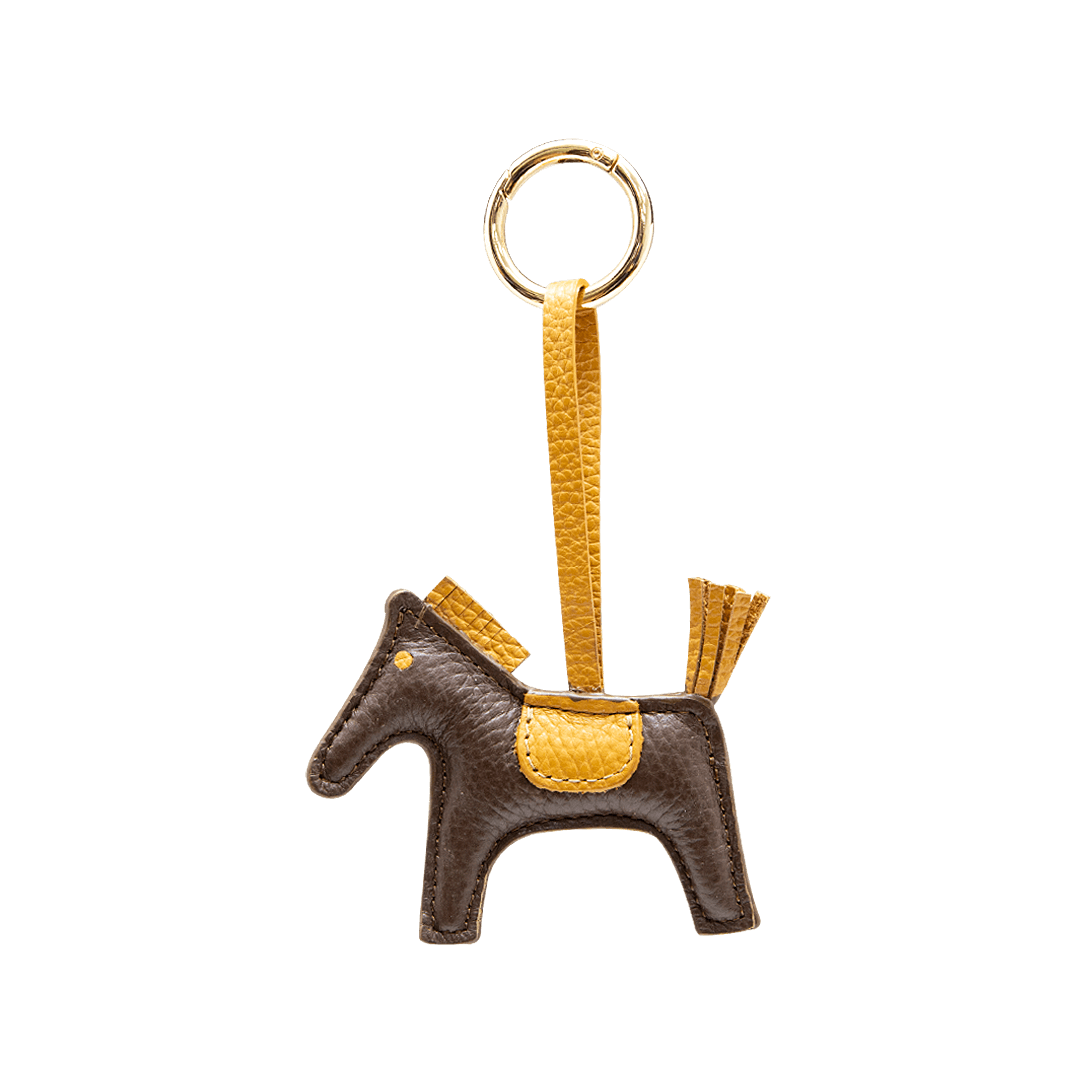 ¡Un accesorio que hable por ti! • Llavero para mujer en forma de caballo en cuero granito color cacao por mostaza • Hecho a mano en Colombia.