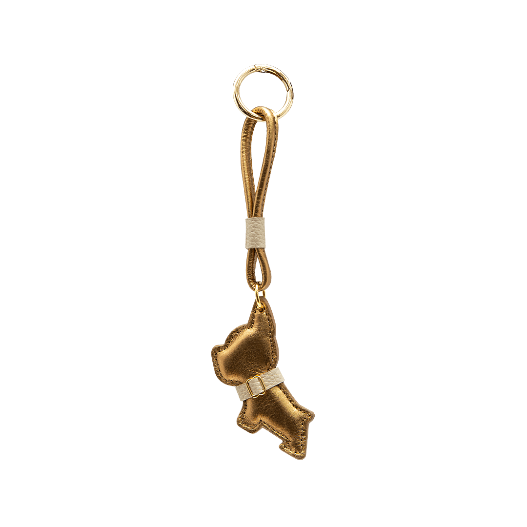 ¡Un pequeño recuerdo que siempre te acompaña! • Llavero en forma de perro en cuero metalizado color bronce por pardo • Hecho a mano en Colombia.