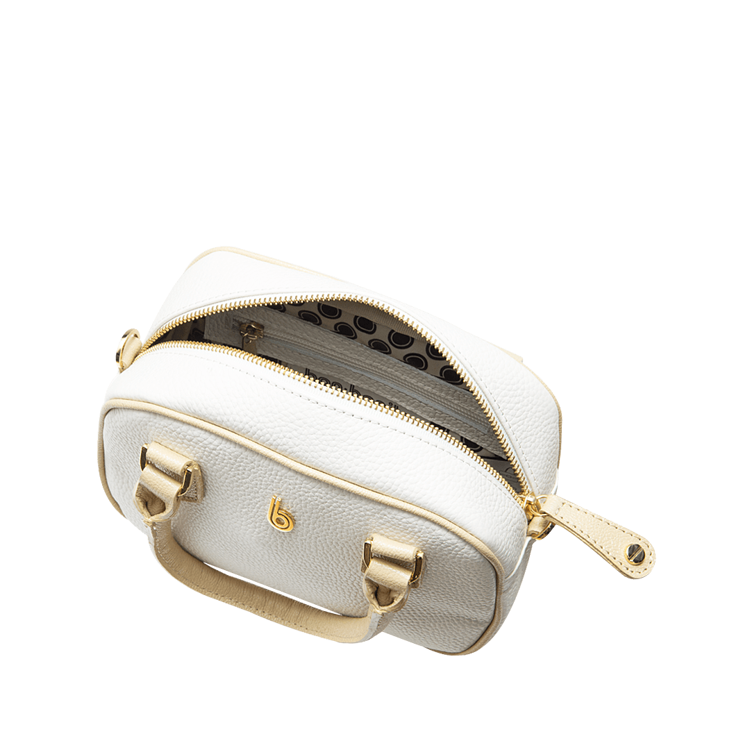 ¡Para adaptarse a tu estilo! • Manos libres para mujer en cuero granito color blanco crema por mantequilla • Un compartimiento interno con cierre mediante cremallera • Asa corta doble de 32 cm • Asa larga ajustable y removible de 134 cm • Hecho a mano en Colombia.