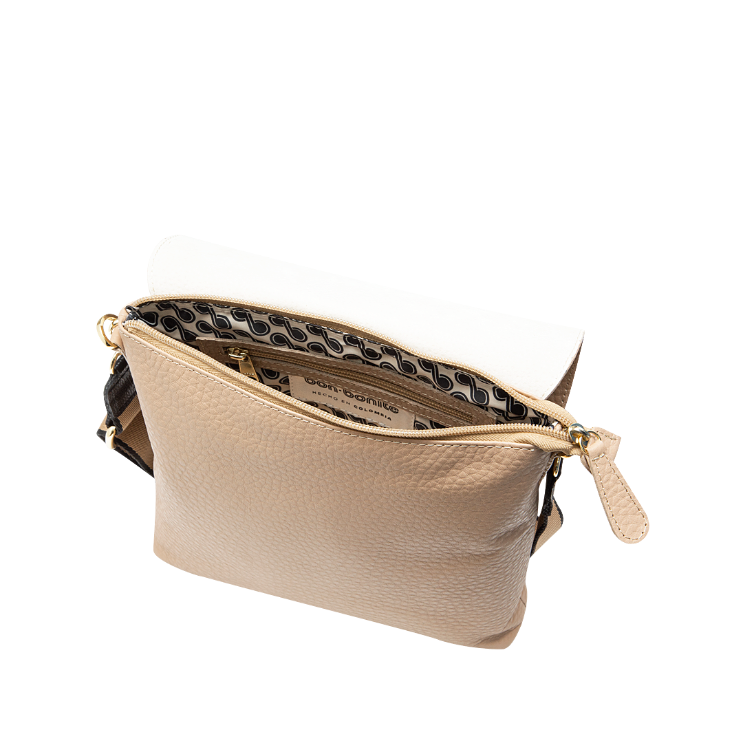 ¡Perfecto para el día a día! • Manos libres para mujer en cuero granito color cacao • Cierre mediante tapa y cremallera • Un compartimiento interno con cierre mediante cremallera • Dos bolsillos auxiliares • Reata larga removible y ajustable de 116 cm • Hecho a mano en Colombia.