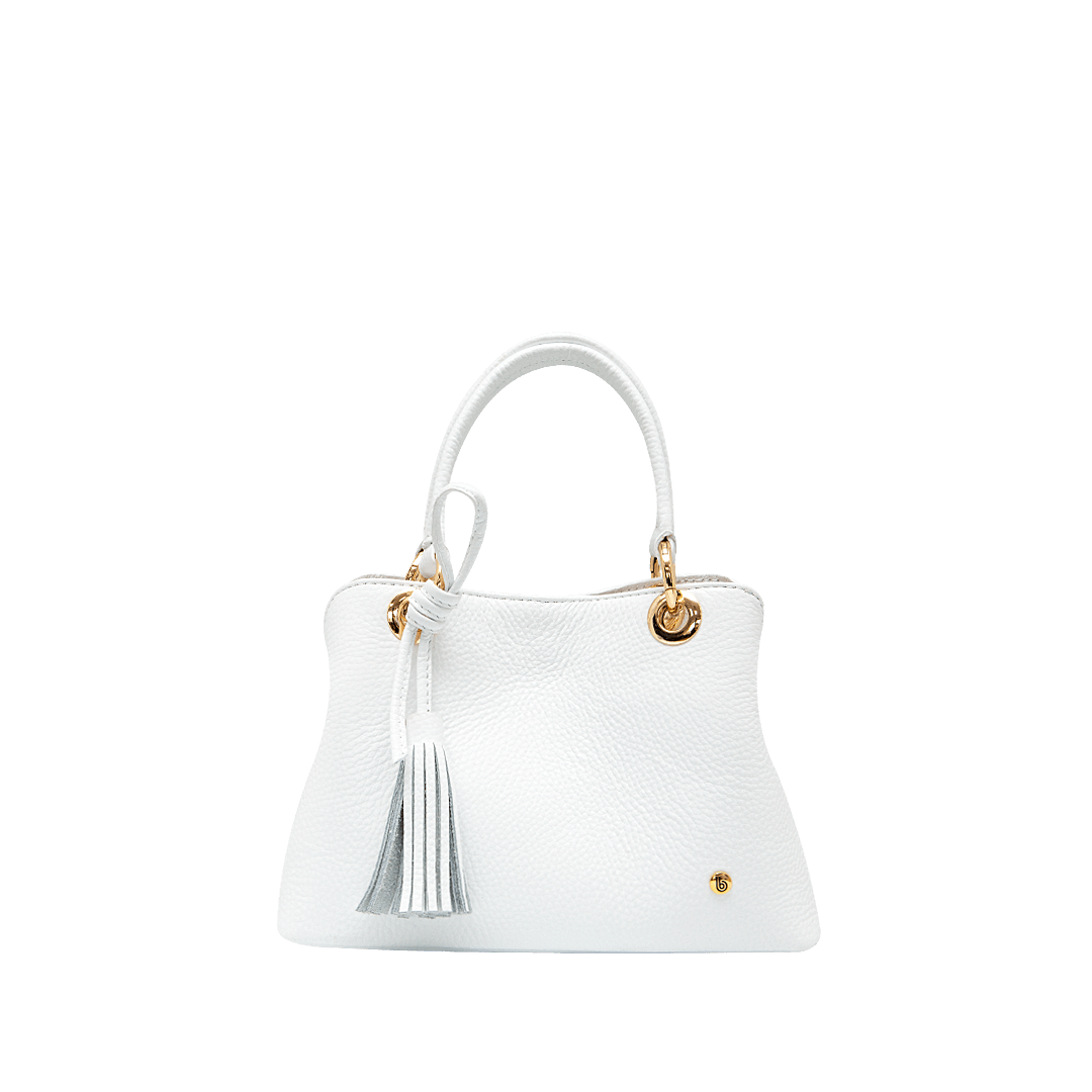 ¡Un estilo sin límites! • mini cartera en cuero color blanco puro • Cierre con broche a presión • Bolsillo principal y compartimiento con cremallera • Forro en textil • Asa corta de 36 cm • Asa larga removible de 76 cm • Hecho a mano en Colombia.
