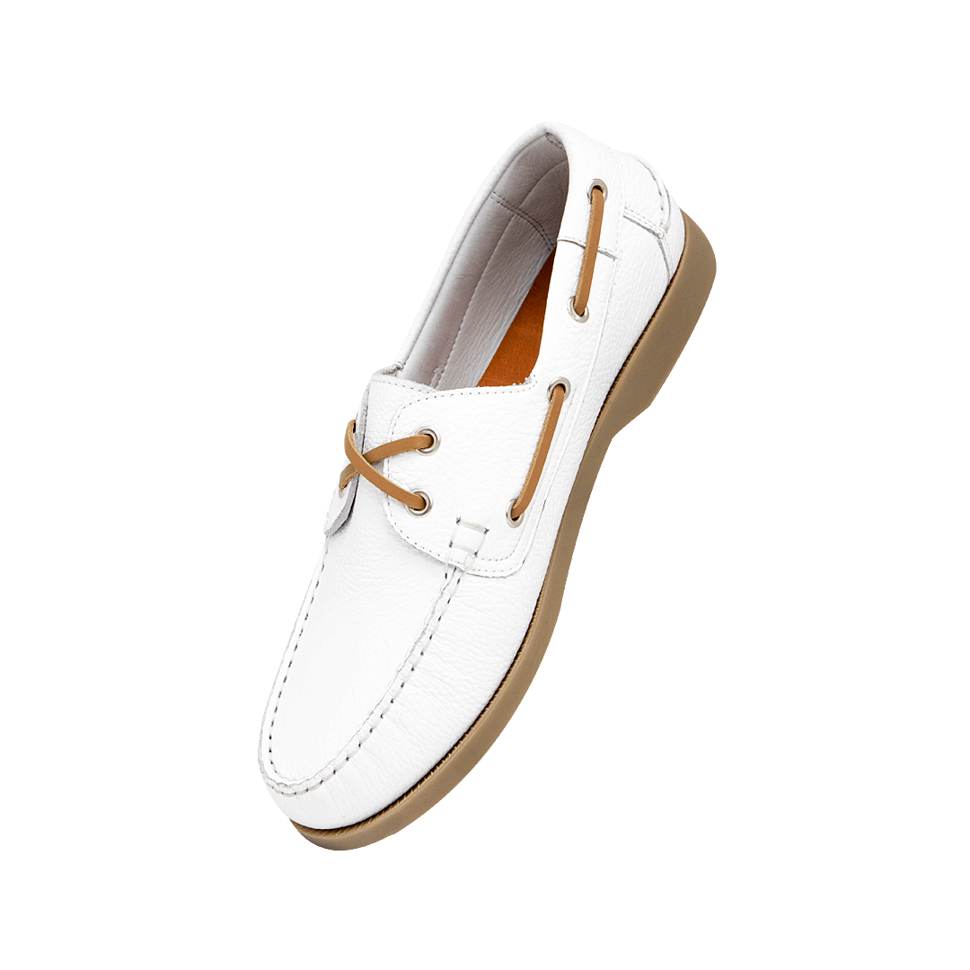Náutico con cordón en cuero blanco puro