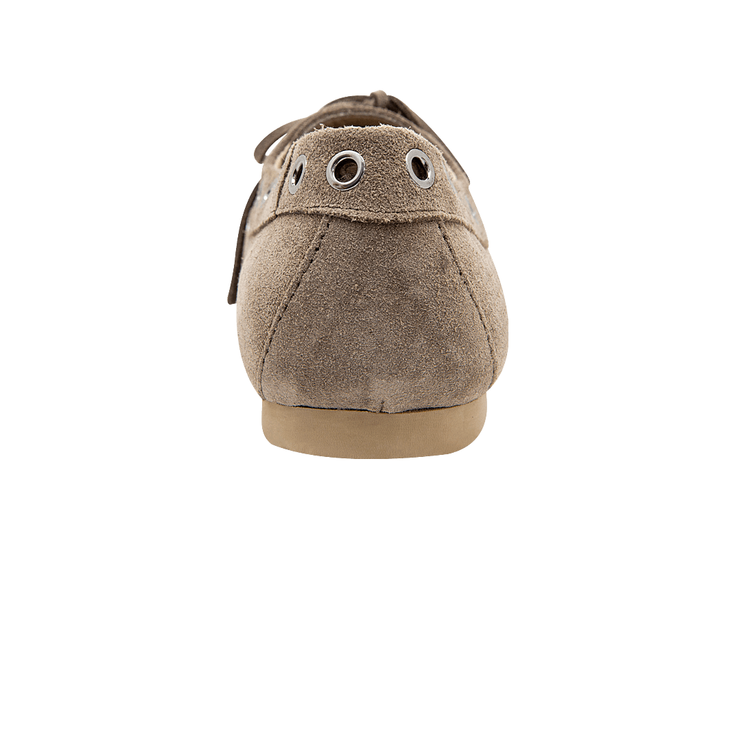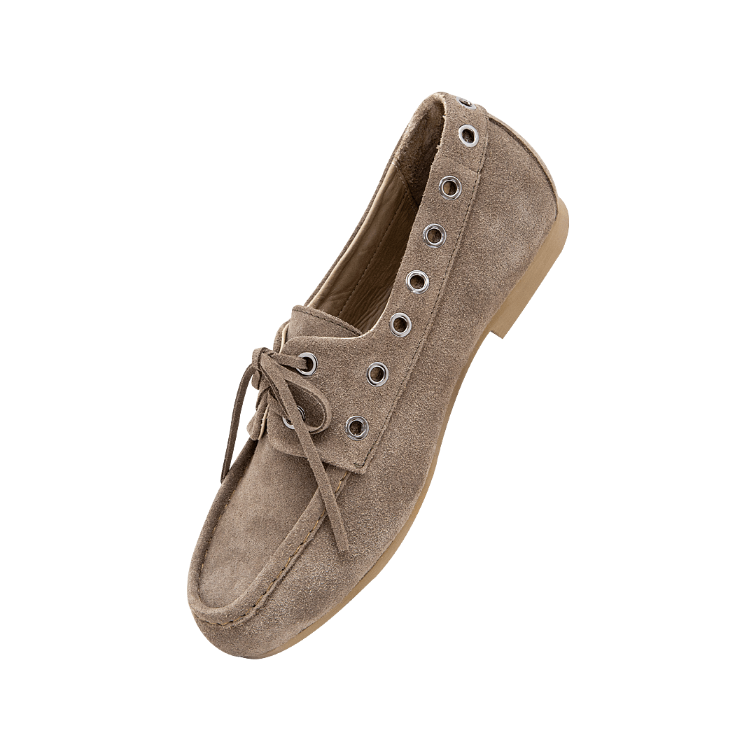 Mocasín con ojaletes en cuero almendra